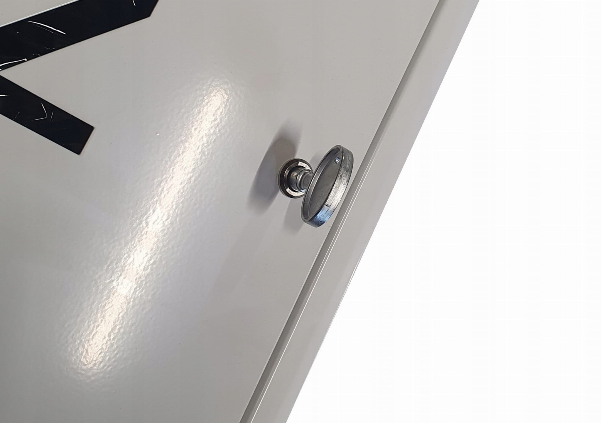 - Dzięki białemu pokryciu drzwiczek idealnie wpasowują się one w białą elewację budynku