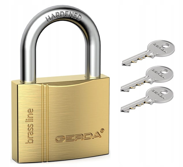Kłódka GERDA BRASS LINE przeznaczona jest do ogólnych zastosowań. Doskonale sprawdza się na działkach, w ogrodach czy do zamykania bram i furt. Kłódki mosiężne pałąkowe serii BRASS LINE wyposażone są w masywny mosiężny korpus, pałąk ze stali hartowanej, sprężyny ze stali nierdzewnej. Posiadają też zwiększoną odporność na korozję.