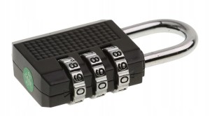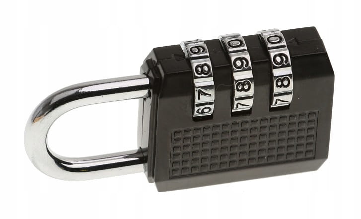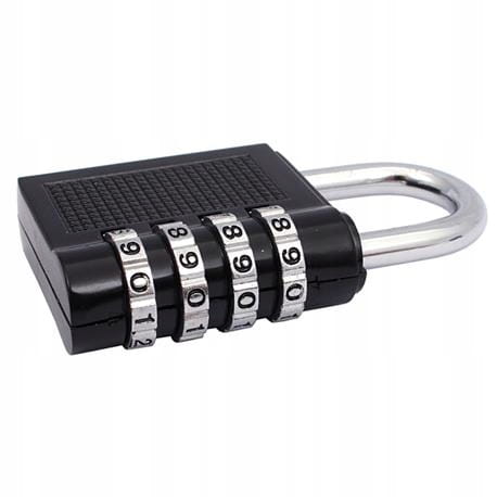 Kłódka z 4-cyfrowym kodem, z możliwością jego zmiany.