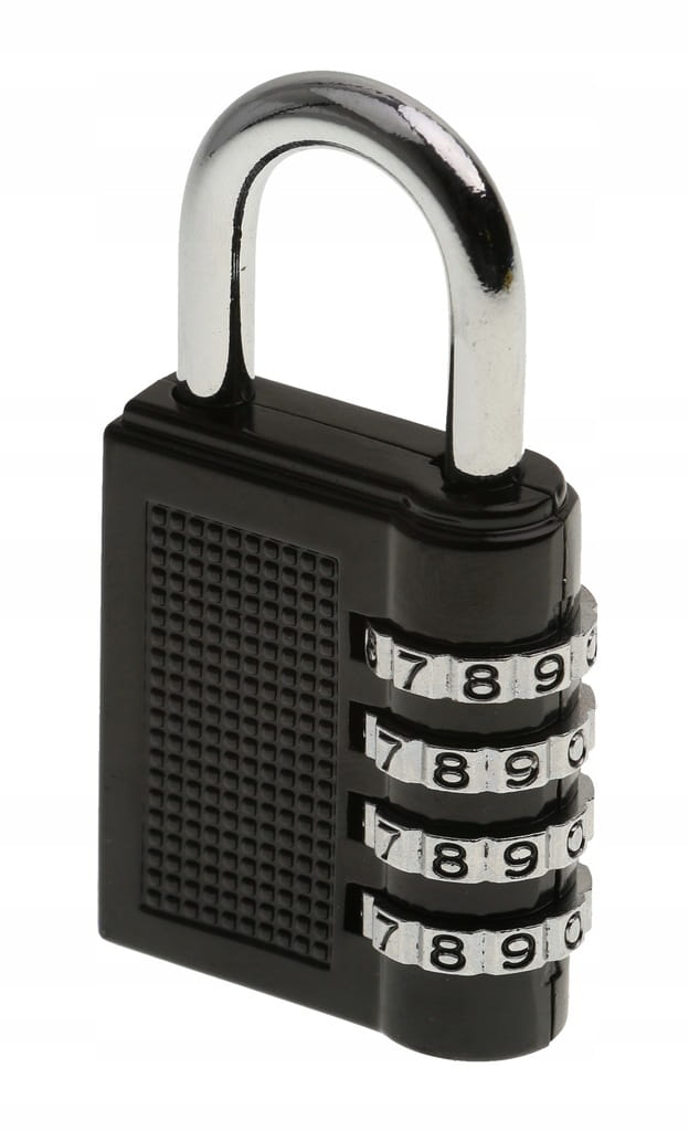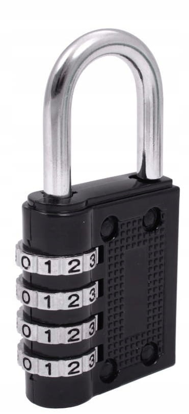Kłódka z 4-cyfrowym kodem, z możliwością jego zmiany.