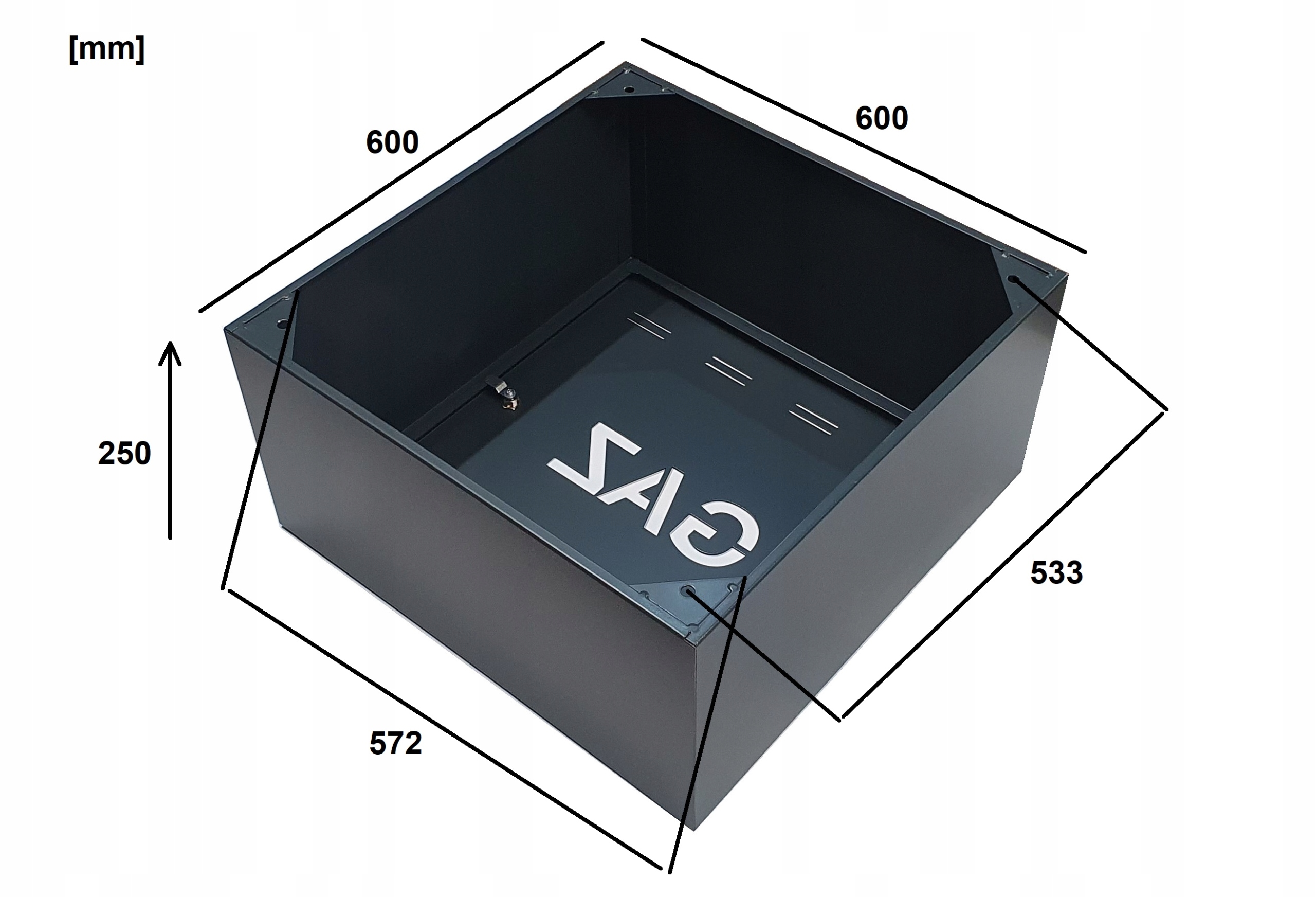 - Rozmiary całkowite: 600 x 600 x 250 mm