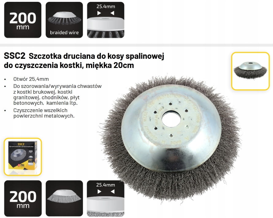 SZCZOTKA DO KOSTKI BRUKOWEJ CZYSZCZENIA MCHU KOSY PODKASZARKI 200mm 25,4