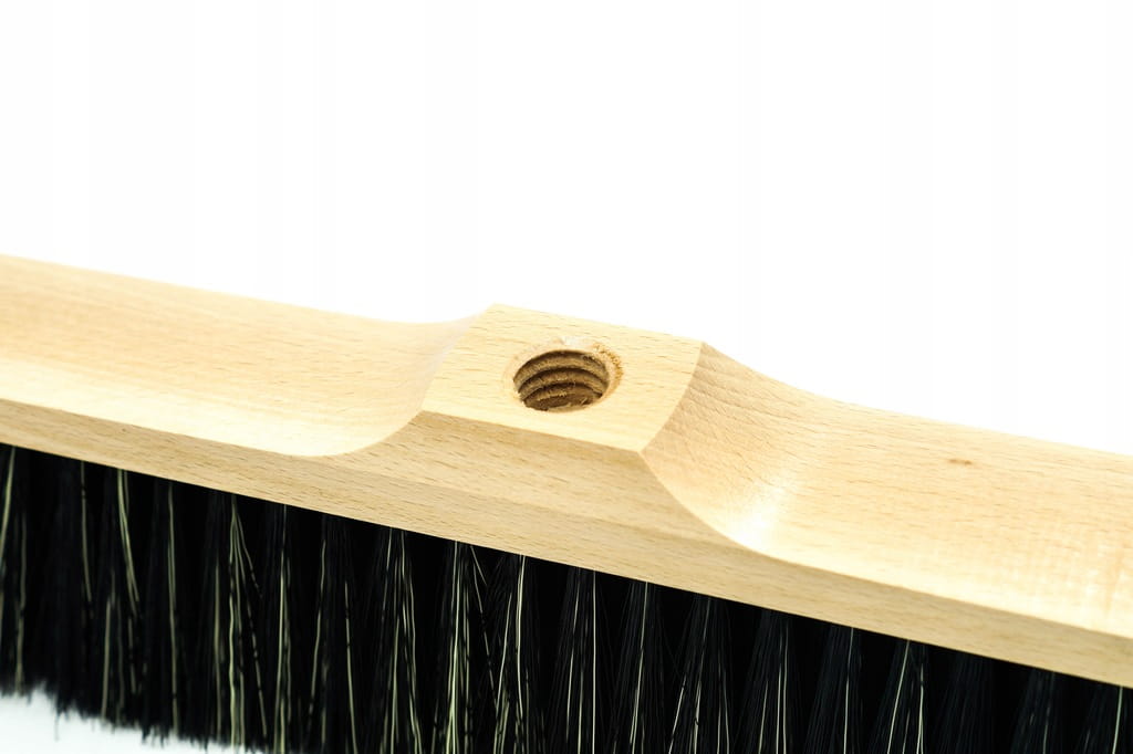 - Zamiatacz o szerokiej części roboczej z drewnianą oprawą, dzięki której produkt staje się dużo bardziej odporny na uszkodzenia mechaniczne.